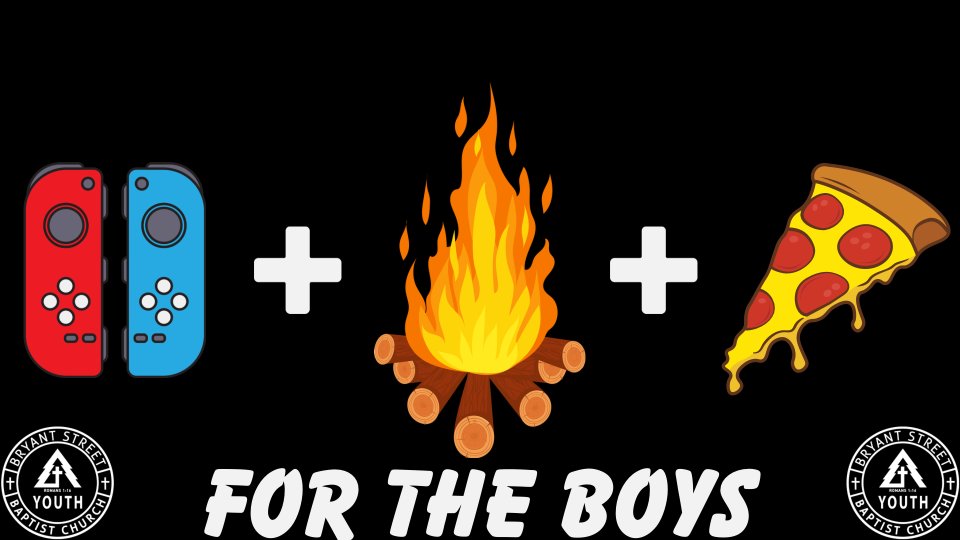 Boys, join us for an epic evening of fun and community from 6-9 PM! This event is packed with all the things you love: Papa John’s pizza, switch games, and fireside fellowship. Join us for a great night.