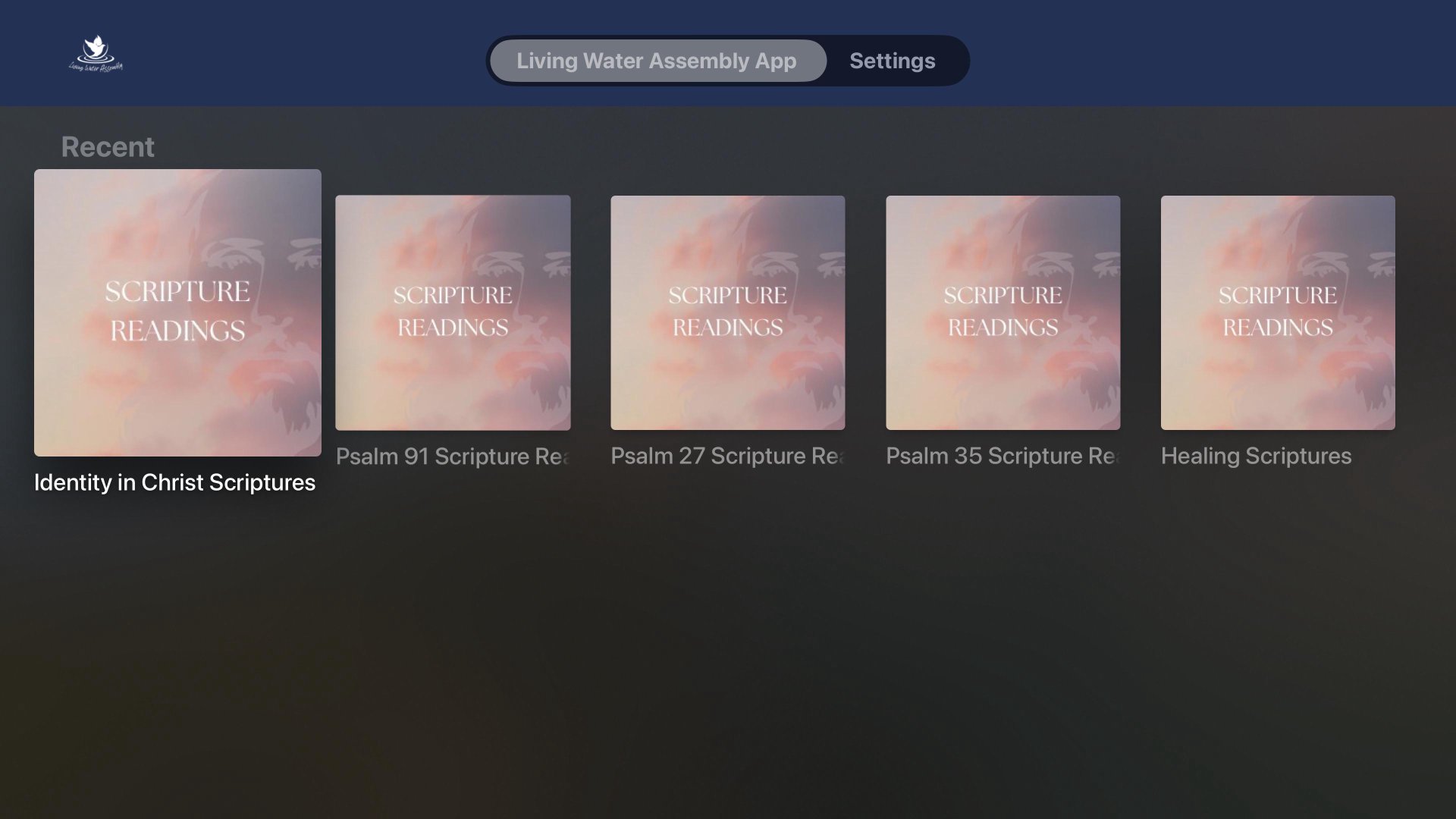 This app will help you stay connected with Living Water Assembly. With this app you can: watch or listen to past messages; stay up to date with push notifications; share your favorite messages via social media or email; and download messages for offline listening.