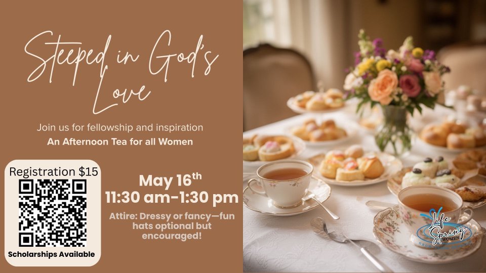 Join us for a lovely afternoon of tea, treats, and fellowship as women gather to relax, connect, and enjoy time together. Tickets are non-refundable but may be transferred if you are no longer able to attend. To help us plan for food and seating, registration will close one week prior to the event. We appreciate your understanding in this. Childcare is available. We hope you will join us!
