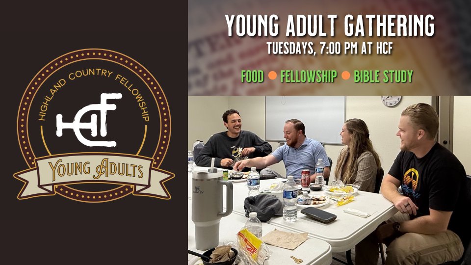 Join the young adults of HCF for fellowship and Bible study each Tuesday evening. This event is held at the church. These meetings are led by Brennan and Jenna Baxter, Madeline and Garrett Henson. Contact Brennan at 214-926-1246 or click the button provided to email him.