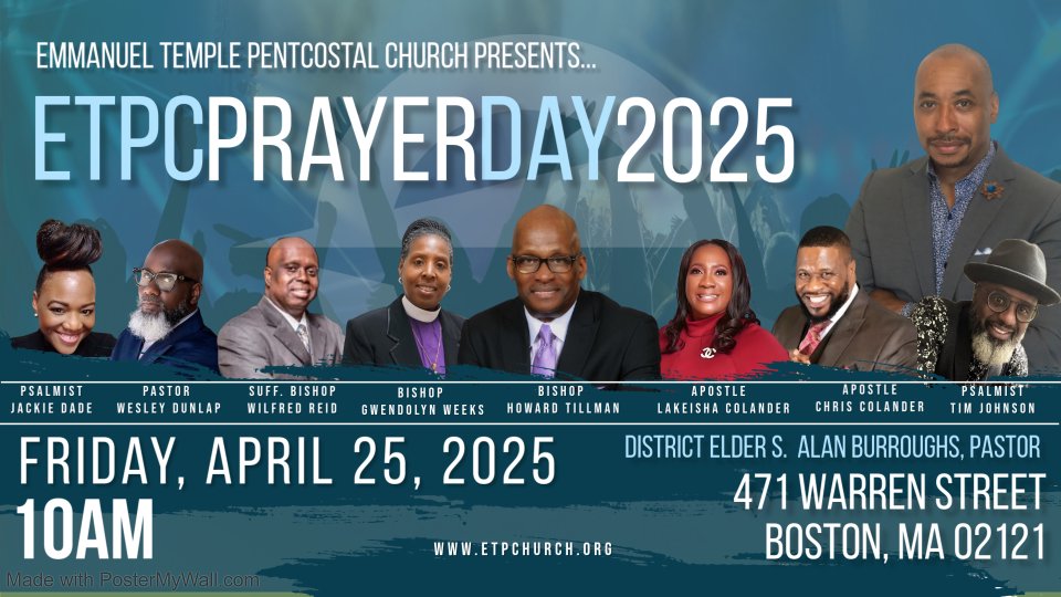 An unforgettable, immersive day of prayer, worship, and powerful preaching. Our guest preacher is Bishop Howard Tillman of Columbus, OH. Special guest psalmist Jackie Dade and Dove Award winner Tim Johnson.