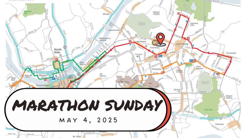 Many of the roads on your normal Sunday commute will be affected by closures for the Pittsburgh marathon. Click the button above to see the race route and plan your way in that morning!