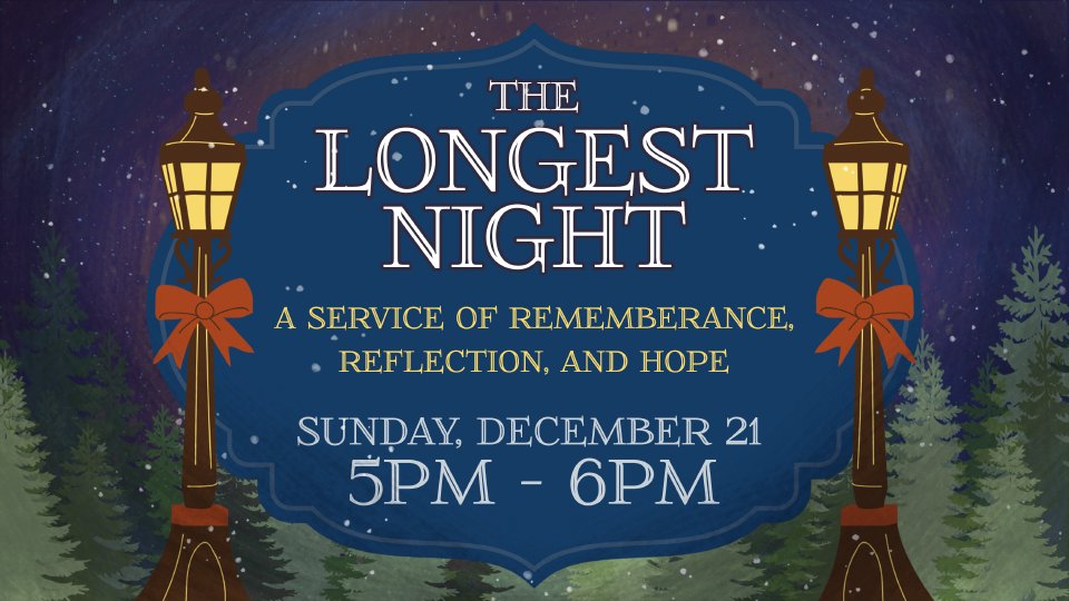 While the holidays can be full of cheer, they can sometimes be a time of grief or hard times. On the Winter Solstice, December 21, at 5 PM, this service will be filled with prayer, quieter songs of the season, and candlelight.