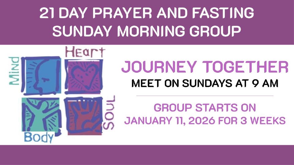 Join us on Sunday mornings at Compass Church at 9 am as we gather and share the 21 day prayer and fasting experience together, The plan is to fast - to give up something that has a hold on you or keeps you from focusing on God and to participate each day in the 21 day video-based devotionals found on our app. This group will meet 3 times to discuss how the prayer and fasting is going and to share how God is working in our lives. Get connected and be encouraged. Please register so we know you are coming.