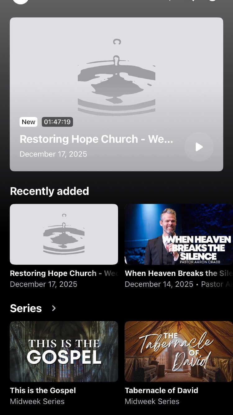 This app is where you can: - Watch or listen to Restoring Hope Church messages - Stay up-to-date and sign-up for upcoming events - Download messages for offline listening - Make a secure gift