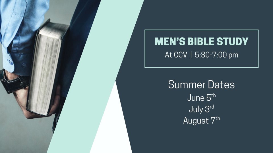 The Men's Bible Study will meet over the summer on June 5th, July 3rd, and August 7th at CCV.