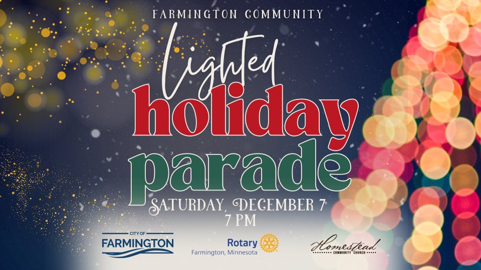 We are partnering with the City of Farmington and the Rotary to bring you the first annual Farmington Lighted Holiday Parade on Saturday, December 7th at 7pm. The parade route will pass by in right in front of our building. There will be firepits in the street, live music and free hot chocolate.
