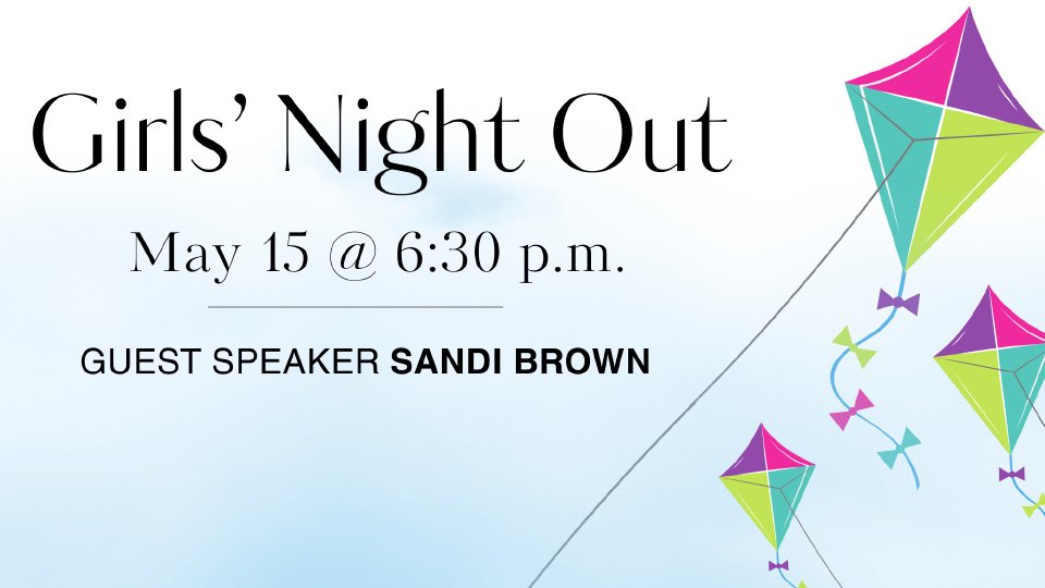 The Women's Ministry is excited to announce their next Girls' Night Out event featuring Sandi Brown, Founder of Joy FM! Join us on Thursday, May 15 at 6:30 p.m. in the Sanctuary and spend the evening being encouraged through Sandi's inspiring story - followed by coffee, dessert, and conversation.