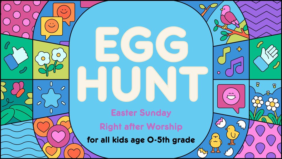 Our annual Egg Hunt will take place on Easter Sunday, April 20th, right after Worship.
