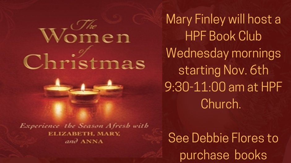 Join Mary Finley at HPF in Lake Room to discuss November's Book of the Month