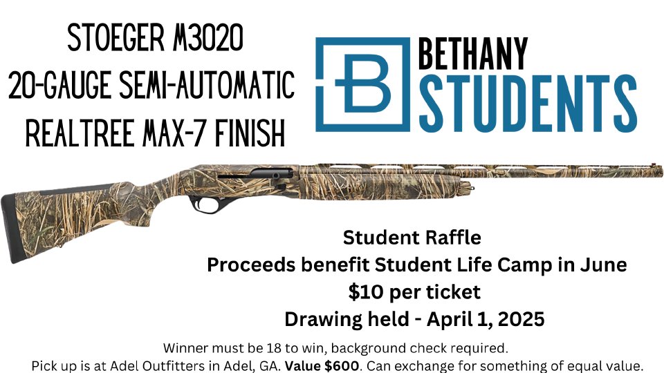 Students are holding a raffle for Student Life Camp held in June. Tickets are $10 each. Drawing will be held April 1, 2025.
