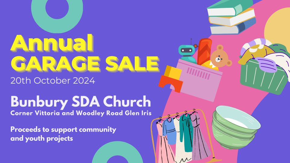 Set up: Sunday, October 13th, 8:30 a.m. Sale Date: Sunday, 20th October 2024, starting at 8:00 a.m., with pack-up at around 2:00 p.m. Help from the church family to set up and pack away at the end of the sale would be greatly appreciated. The hall will be unavailable for use from the week of October 13th to Tuesday, October 22nd. Please note that we apologise for any inconvenience caused by the sale. See Kaye, Joy, or Rosalie for more information.