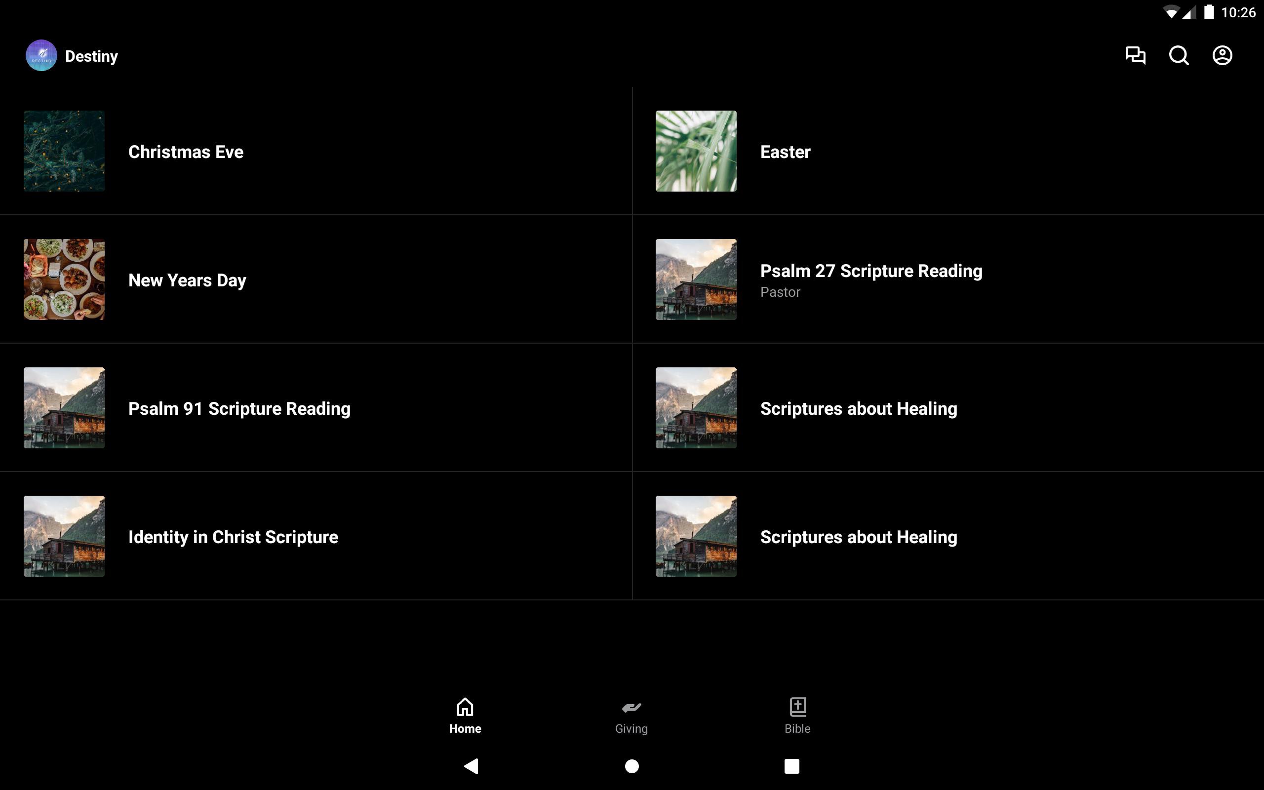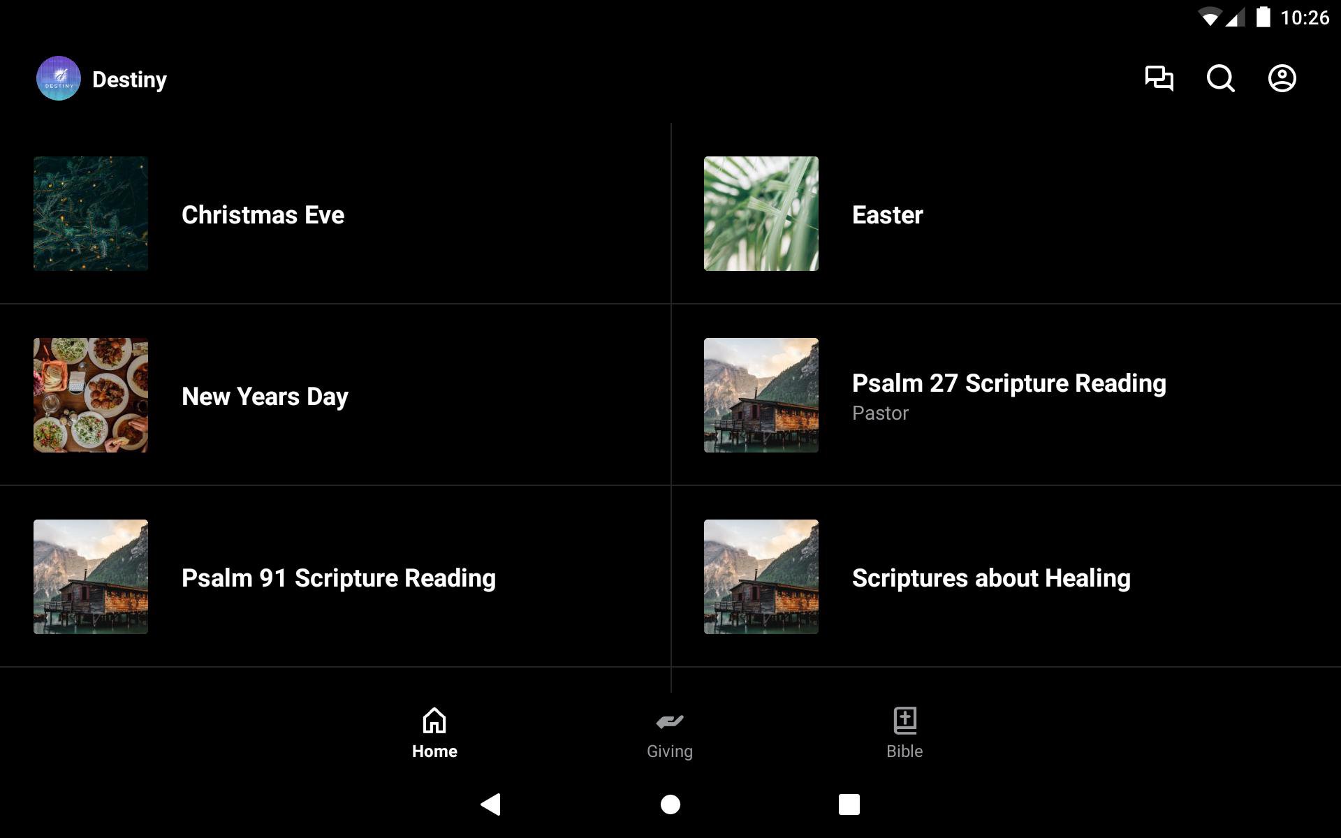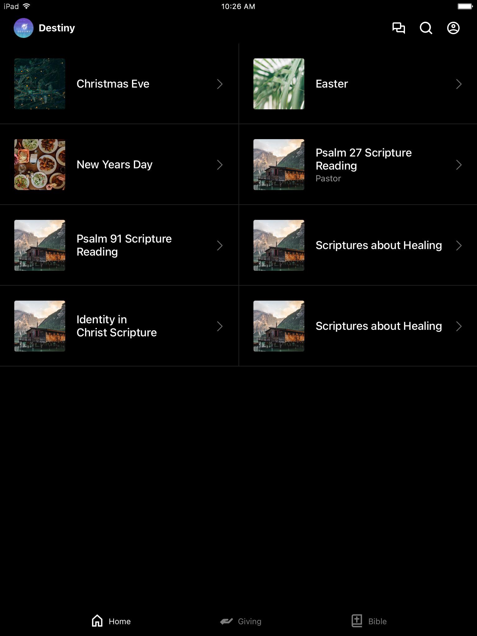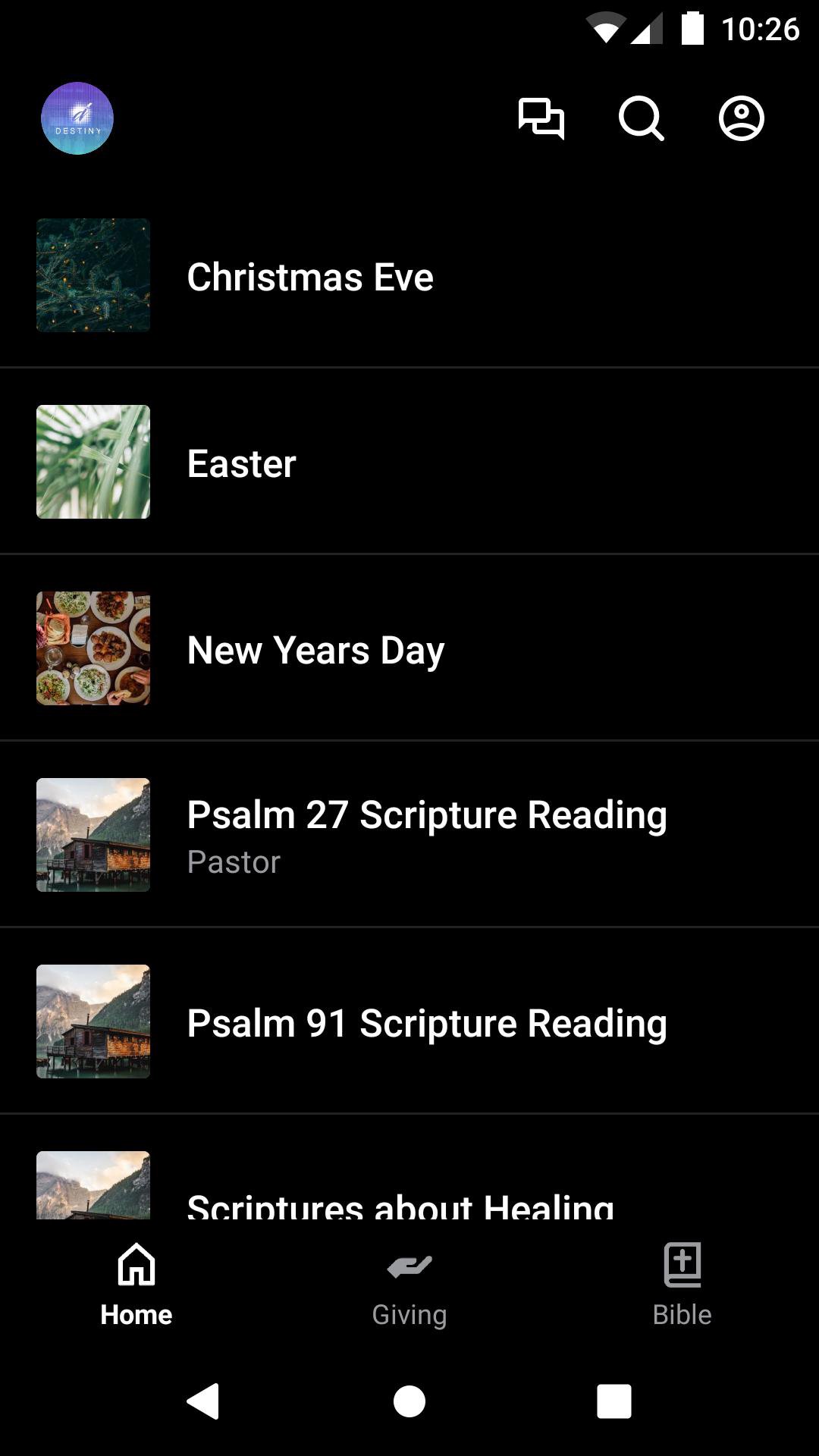 Stay connected with the day-to-day life of Destiny! Watch or listen to past messages, stay up to date with notifications and share your favorite messages. The Destiny mobile app also empowers you to track and respond to upcoming volunteer requests.