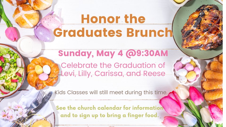 For the Honor the Graduate Brunch, we will be honoring our seniors. This will substitute classes for teens, college, and adults. Registration is open to sign up to bring finger foods for the event.