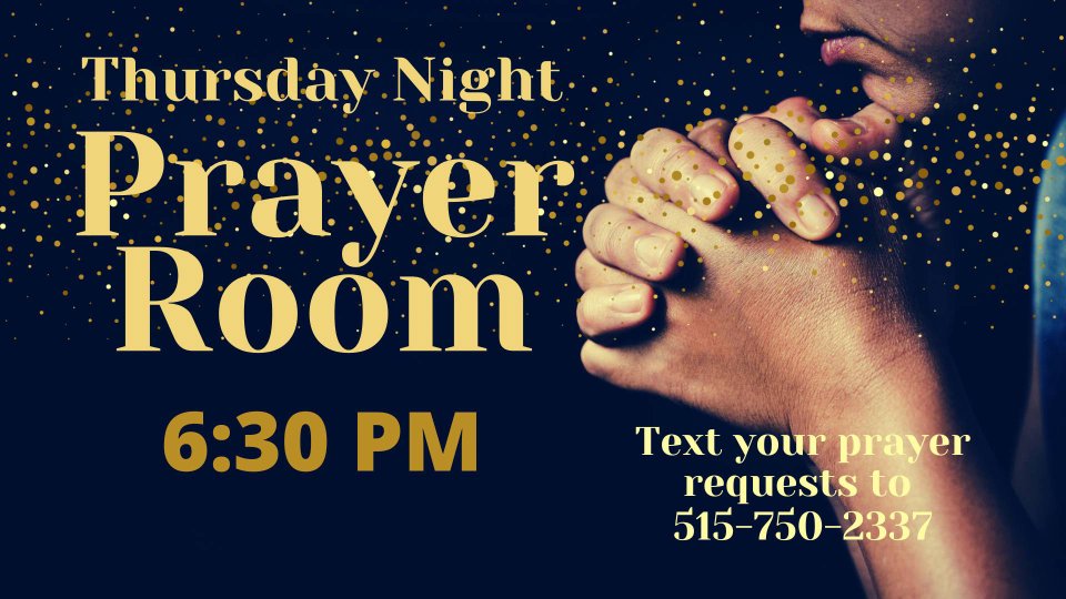 Please join us Thursday nights from 6:30PM - 7:30PM. You can join us anytime during this hour and are free to come or go as needed. During this time, we have worship, prayer and declarations.