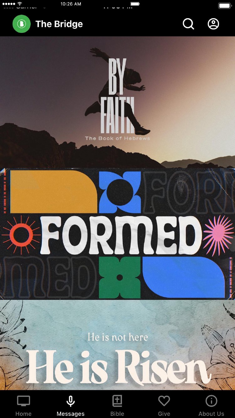 The official Bridge Church app is packed with powerful content and resources to help you stay connected and grow. With this app you can: - Watch or listen to past messages - Sign up for events - Stay up to date with push notifications - Share your favorite messages via Twitter, Facebook, or email - Download messages for offline listening - And more