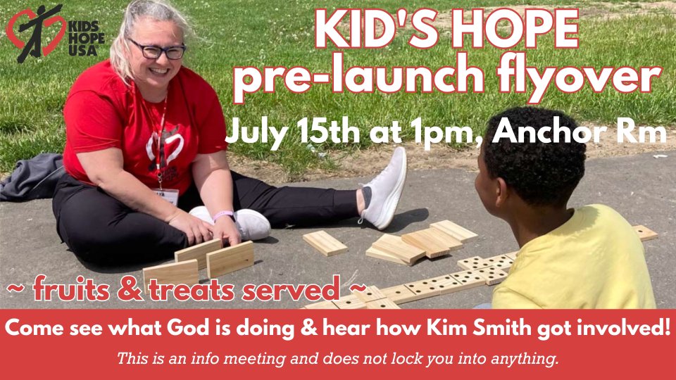 These relationships become the foundation for reaching neighborhood families with the good news of Jesus Christ simply by demonstrating HIS love and faithfulness every week. Join us in the Anchor Rm - fruits & treats served.
