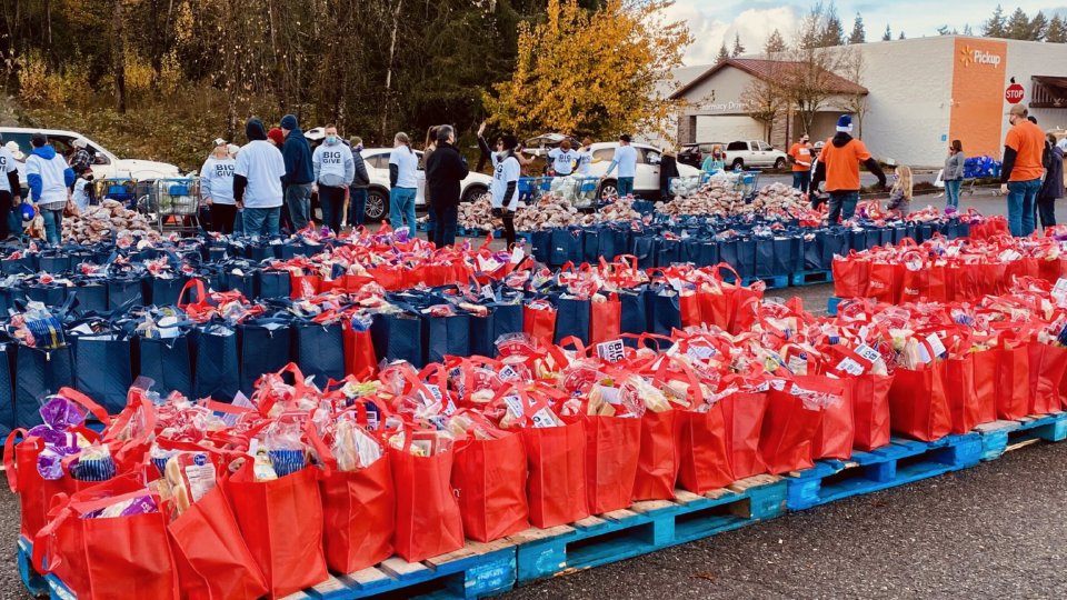 COMMUNITY BIG GIVE is an annual event, held the Saturday before Thanksgiving. On this day we distribute groceries to targeted families in need within the Sumner-Bonney Lake, Dieringer & White River School District Communities who have signed up for a meal. This year we project 1,500 to 2,000 meals will be distributed.