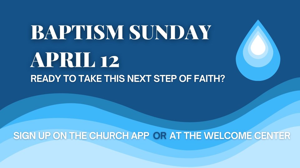 Are you ready to take this next step of faith? Baptism Sunday is coming up on April 12. Use the sign up above to express your interest and a pastor will reach out to you.