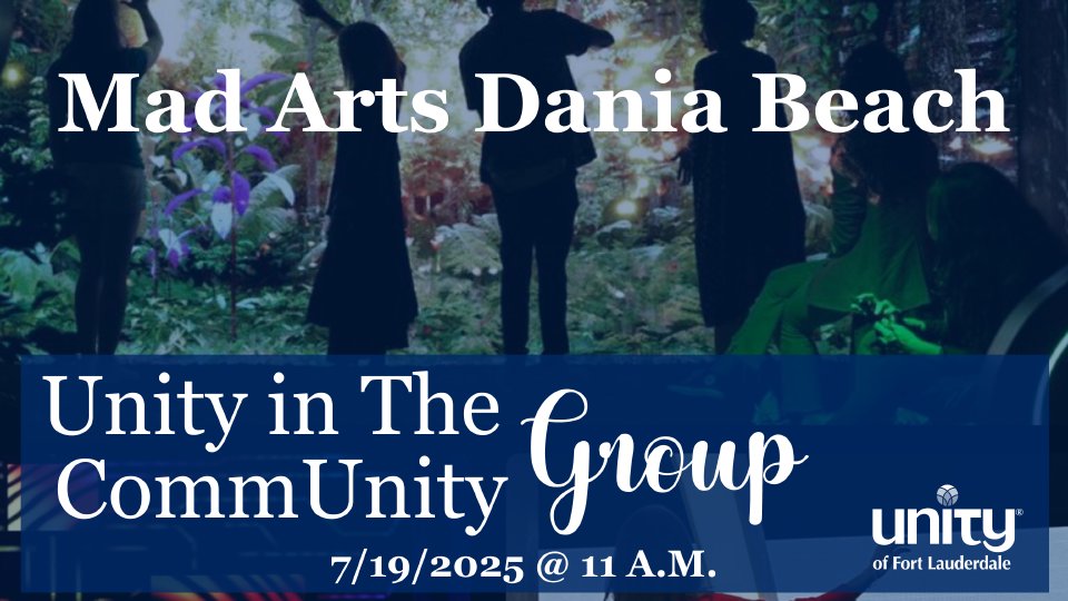 Come together with the Unity in the CommUnity Group and join us for an immersive art exhibition at Mad Arts Dania Beach - Our group embodies and promotes the spirit of Unity of Fort Lauderdale's mission of gathering with like-minded people: "Transforming Lives through the Power of Love and Connection to Make a Positive Difference in the World, in the CommUnity." Click below to purchase your tickets individually and meet us at Mad Arts.