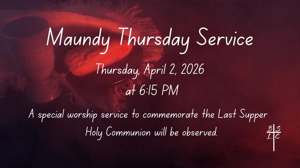 Join us for our Maundy Thursday service. It will be a complete worship experience with Holy Communion observed.
