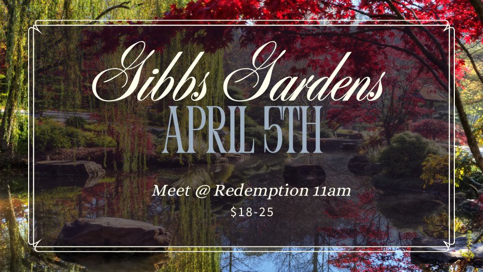 Our Young at Heart, 55 years and older, small group will be going to Gibbs Gardens on April 5th. We will meet at the church to carpool together at 11am. Tickets cost between $18-$25. You can purchase those online on their website. We hope to see you there!