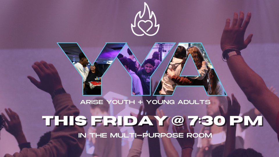 📱 Stay connected by joining the YYA group in the Arise App under "Small Groups > Youth + Young Adults."