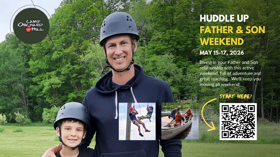 Join us for a Father/Son Retreat at Camp Orchard Hill! This weekend is an awesome resource to gather fathers and sons from your family ministry for a shared experience and a weekend of strength. Designed for sons age 6+