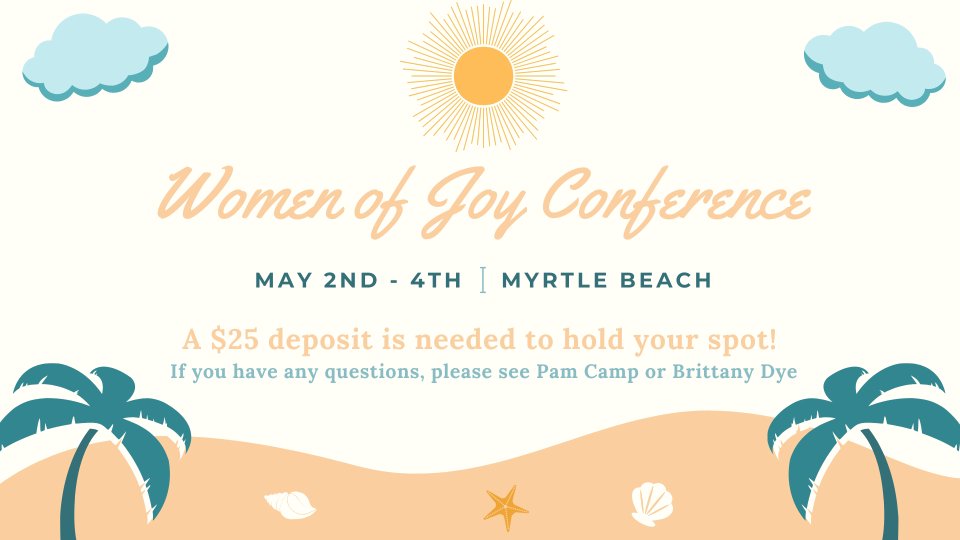 This conference will be in Myrtle Beach, SC from May 2nd -- 4th. You can sign up online, but be sure to pay your $25 deposit to hold your spot -- which can be done online at this link --> https://subsplash.com/u/firstbaptistchurchcowpen/give OR in person.