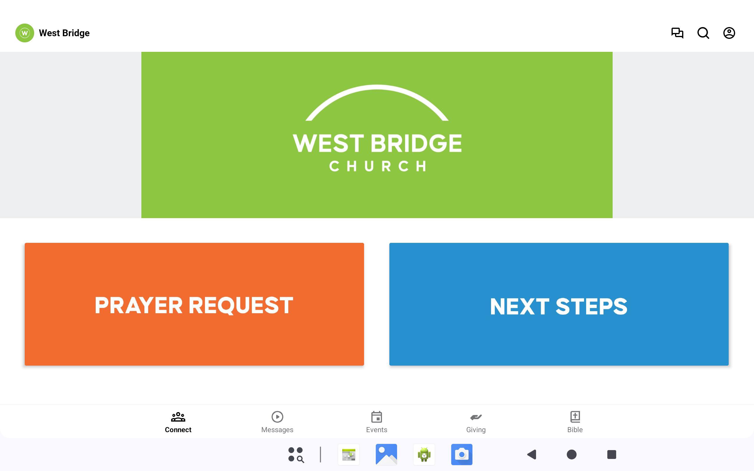This app will help you stay connected to everything going on at West Bridge Church. You can watch previous messages, check the calendar, get notifications from the church and stay up to date with all that's happening.