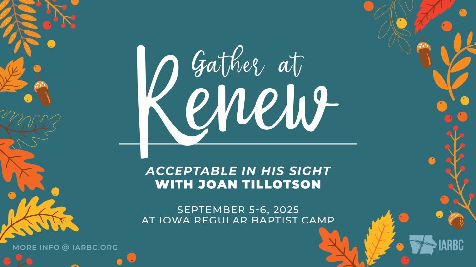 Hosted by the Iowa Association of Regular Baptist Churches. Register by August 15 to receive a $10 discount. Visit irbc.org/retreats-events/womens-renew-conference for schedule of events!