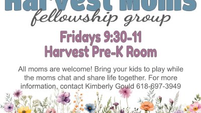Join with other Moms for fellowship and fun while our kiddos play. Friday mornings in the Sprouts room (pre-k room) Contact Kimberly Gould for more information. 618-697-3949