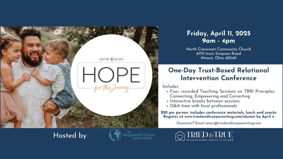 Hope for the Journey is a one-day in-person event where you will learn TBRI principles through four recorded teaching sessions. Lunch, snacks and beverages are included! Tickets are $20 each.