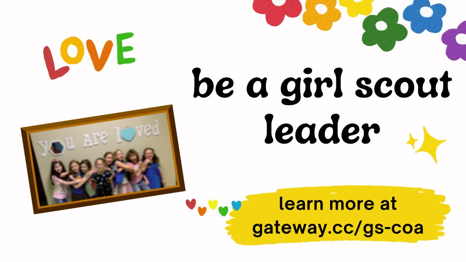 We are a Girl Scouts of San Jacinto group and currently sponsor a Daisy, Brownie and Junior troop. Scholarships are available through San Jacinto council. Volunteers are required to join Girl Scouts and pass a background check.
