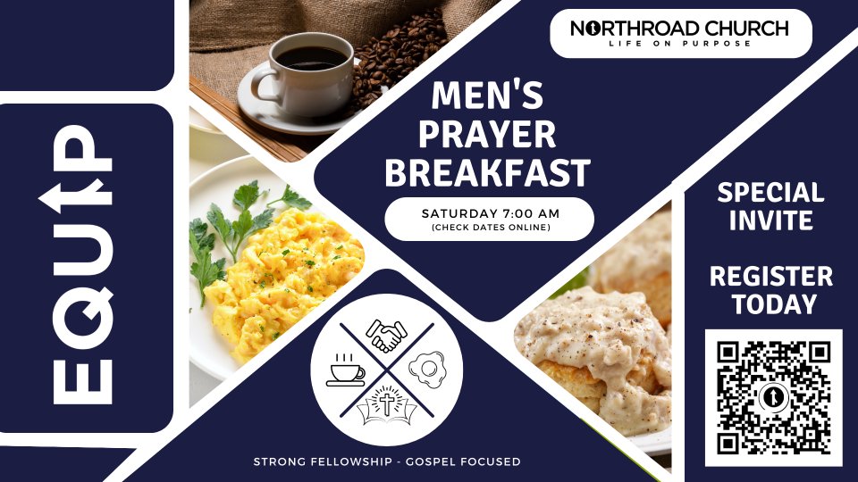MAKE SURE YOU CHECK THE DATE AND SAVE IT ON YOUR CALENDAR. As a man, it is important to connect with other Christ centered men and join in fellowship. Each month Northroad Church opens its doors to men throughout the area to come together to hear the word, worship God, and enjoy breakfast together. It is amazing the power that comes when men come together like this. Join us every month and bring any guest you feel would benefit from this gathering. We ask that you register for yourself and your guests so we can ensure we have the necessary food for all in attendance.