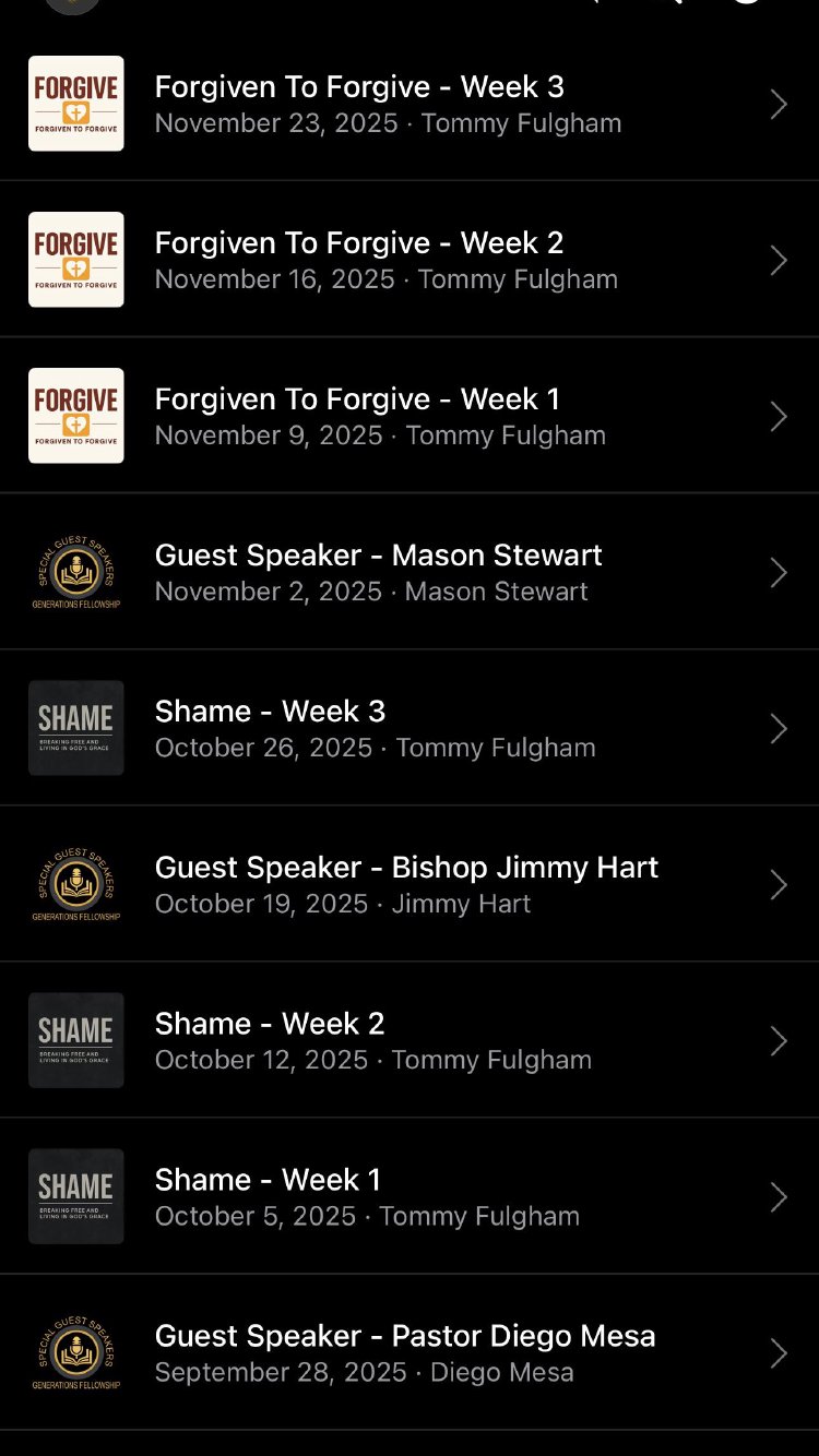 Stay connected to your church community wherever you go. The Generations Fellowship Church app is designed to help you grow in your faith, engage with your church family during the week, and access everything you need for worship, discipleship, and community—all in one place. Whether you’re attending in person or online, this app keeps you informed, encouraged, and connected. - Experience Church Anytime Access your church from anywhere with features that help you stay engaged throughout the week. Watch sermons, join livestream services, read devotionals, submit prayer requests, explore upcoming events, and stay updated with announcements—right from your phone. The entire church experience is available wherever you are. - Watch & Listen Never miss a message. Stream Sunday services live or watch them on demand. Browse past sermons, series, and special messages. Listen to teaching anywhere with audio playback. Whether you're at home, at work, or on the go, the message is always within reach. - Grow Spiritually Use the study tools to stay rooted in Scripture. Follow along with sermon notes during service or review them later in the week. Discover biblical resources designed to help you deepen your walk with Christ. - Prayer & Support Submit prayer requests directly through the app and know your church is standing with you in prayer. Join prayer groups, read encouragement from pastors, and support others through shared spiritual needs. Connect to a faith-filled community wherever you are. - Community & Connection Find your place in the church family. Join small groups, ministries, and volunteer opportunities. Message leaders, sign up for events, and stay connected through built-in communication tools. The app helps make community accessible, inviting, and easy to engage with. - Events & Updates Stay informed with real-time updates and notifications. Browse upcoming events, sign up with one tap, and add them to your calendar. Receive alerts for important announcements, schedule changes, ministry updates, and more. You’ll always be in the loop. - Simple and Secure Giving Give your tithe or offering quickly and securely. Set up recurring giving, manage contributions, and support missions and ministries with just a few taps. The giving experience is designed to be intuitive, safe, and convenient. - Church Info at Your Fingertips Access service times, campus location, contact information, and helpful links anytime you need them. Discover ways to get connected, learn about the mission and vision of the church, and find resources for newcomers or long-time members. - Stay Connected Throughout the Week With push notifications, reminders, and easy access to everything happening in your church, you’ll never feel disconnected. The app brings community into your daily life—offering inspiration, connection, and important updates when you need them. - Download Today Your church. Your community. Your connection to faith—right in the palm of your hand. Download now to stay engaged, encouraged, and connected every day of the week.
