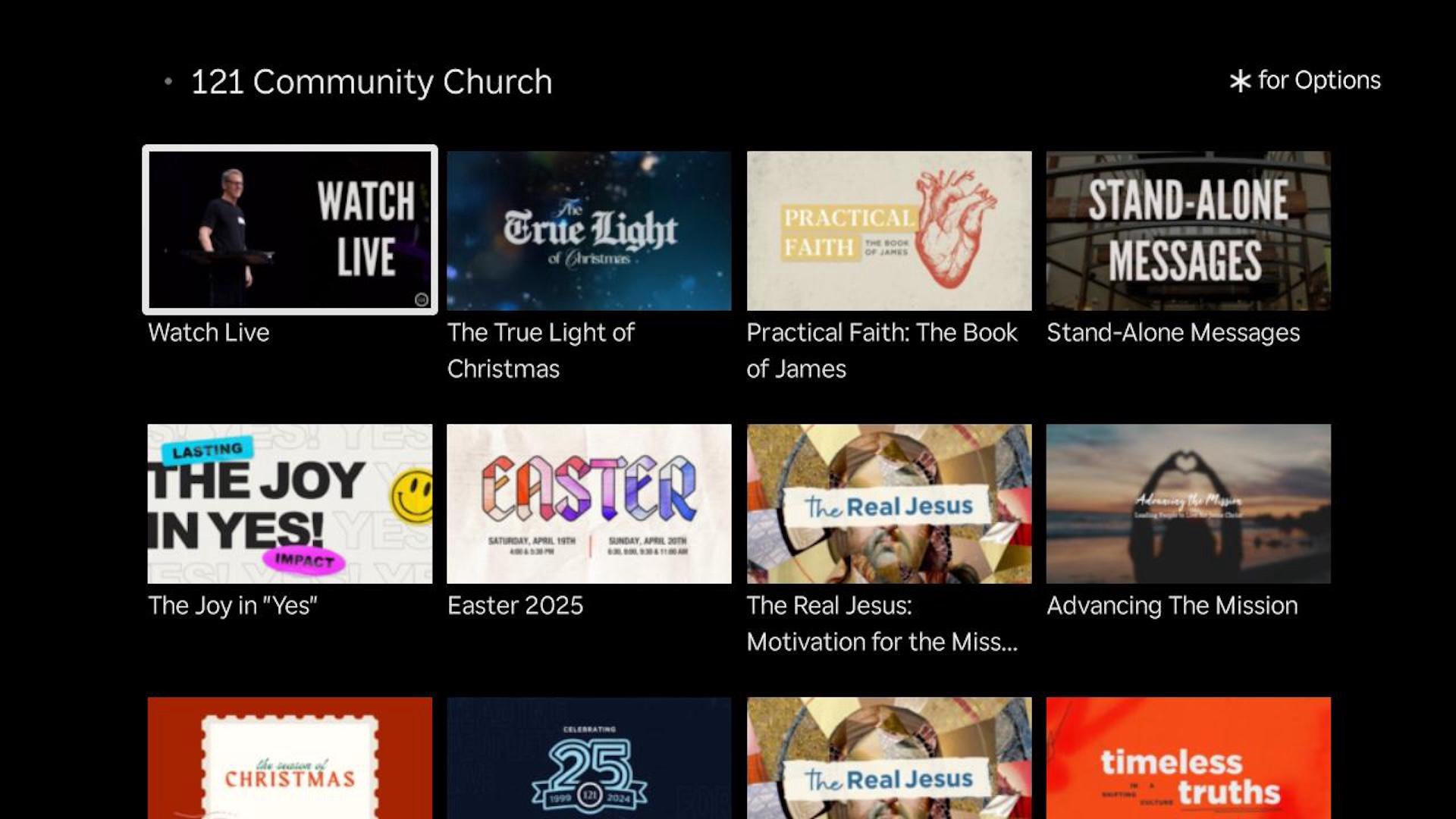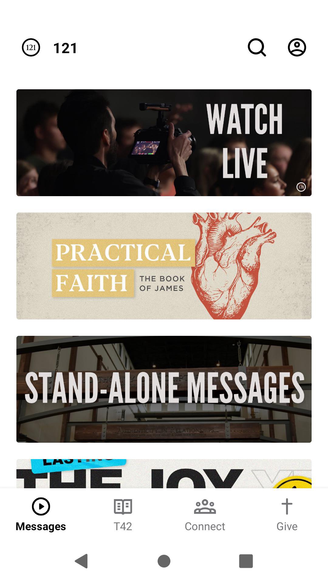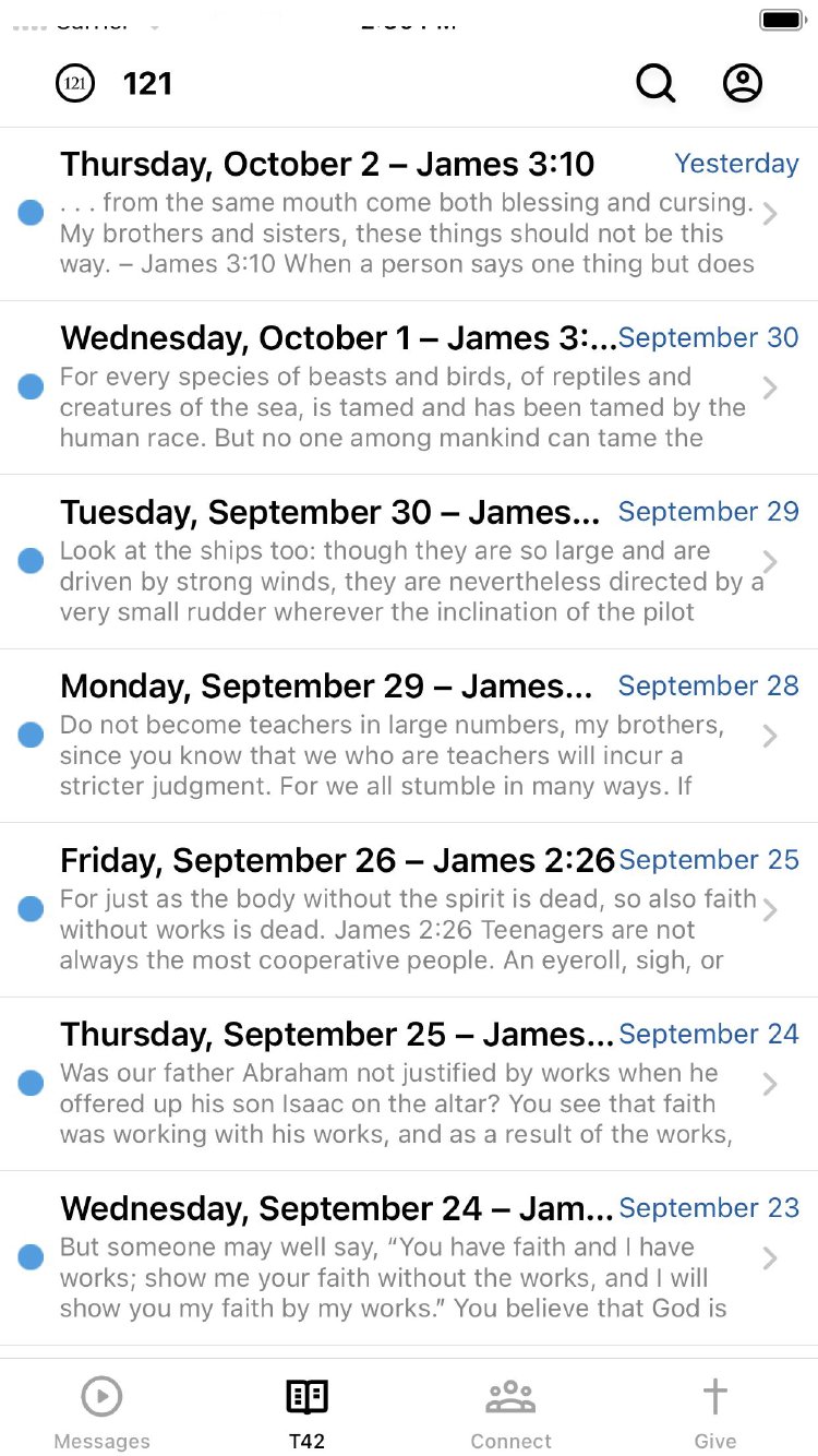 Welcome to the official 121 Community Church App featuring messages, ways to connect and take your next steps, and more! Here is a list of our features: -Watch or listen to our weekly messages from 121. -View sermon notes and/or leader guides for our messages. -Get service times and directions to 121. -Read our Table For Two Daily Devotional. -Connect with 121 on social media. -Find a LifeGroup in your area. -Give online towards 121. For more information about 121 Community Church, please visit: www.121cc.com