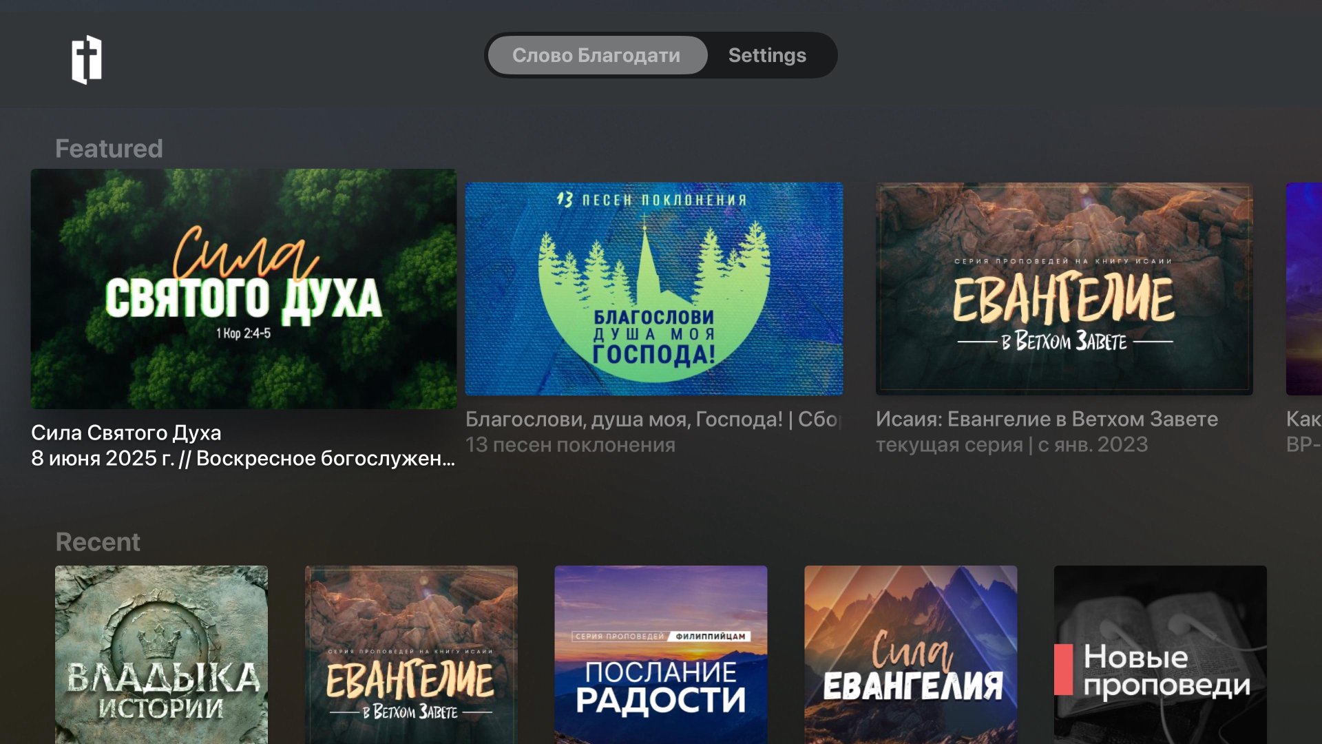 Удобный доступ к медиа-ресурсам церкви "Слово благодати"