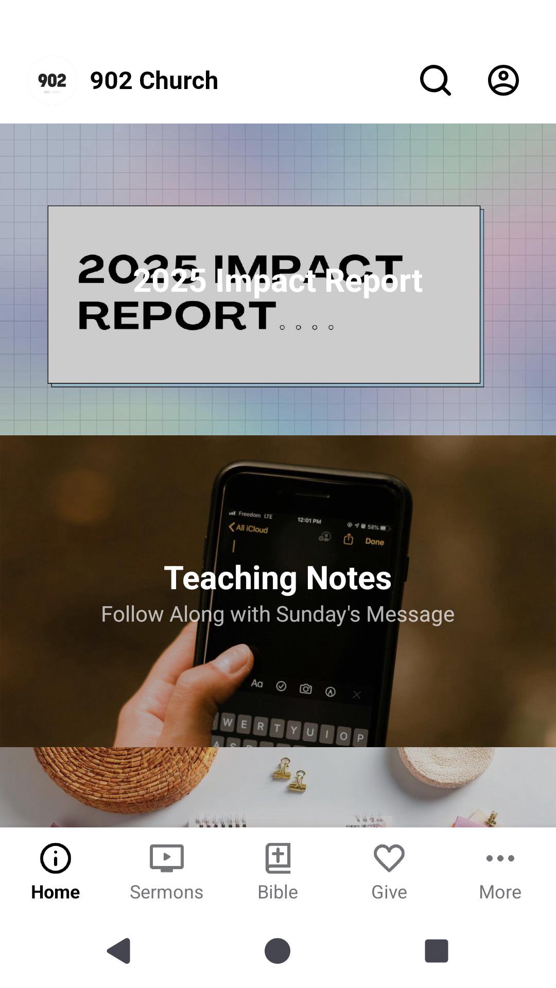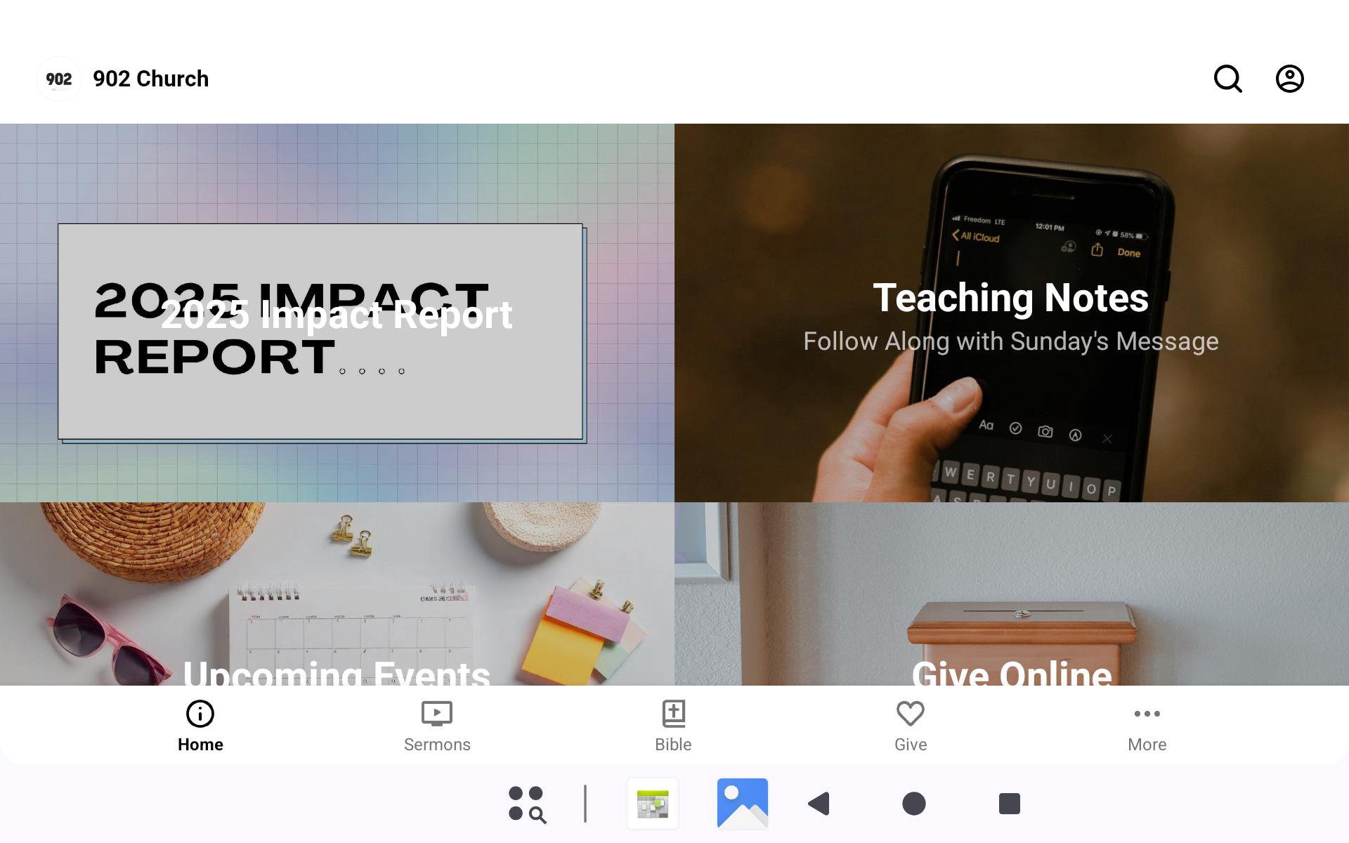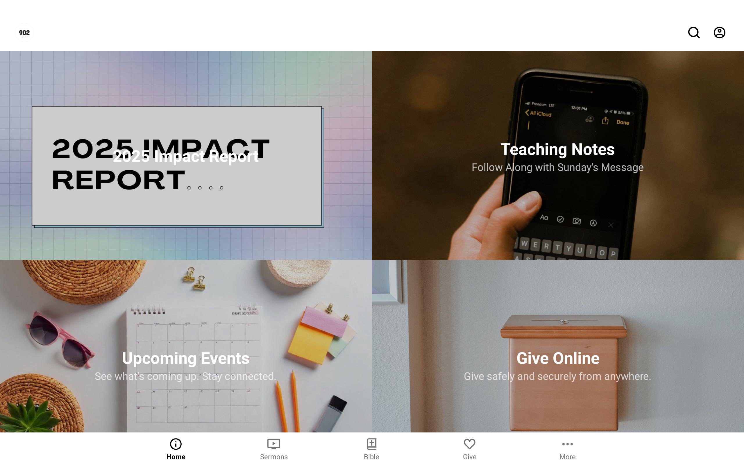 Welcome to the 902 Church App! You can watch messages, keep up with the latest events, read the Bible, and even give safely and securely online right here in the app. Make sure to share it with all your friends and family via Facebook, Twitter, or email. For more information about 902 Church please visit: www.902church.org or send us an email at info@902church.org We hope you'll join us for worship each and every Sunday morning at 9:00 am and 11:00 am! The 902 Church App was created with the Subsplash App Platform.