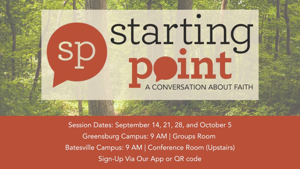 The church should be the safest place to have hard conversations about faith. Starting Point is for people who are brand-new to Christianity, new again to church, or just have questions or doubts about faith and spirituality.