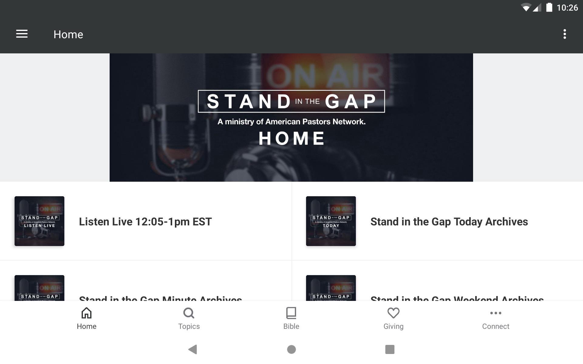 Stand in the Gap Radio and TV resources, media ministries of the American Pastors Network, present timely insights on today's biggest events through the lens of a biblical worldview. Using the principles found in God's unchanging Word, and the foundational truths of the US Constitution, Stand in the Gap programs equip Christians to think and act critically and biblically on some of the most challenging issues facing families, pastors, and churches; bringing clarity into confusion and making sense out of the nonsense that surrounds us.