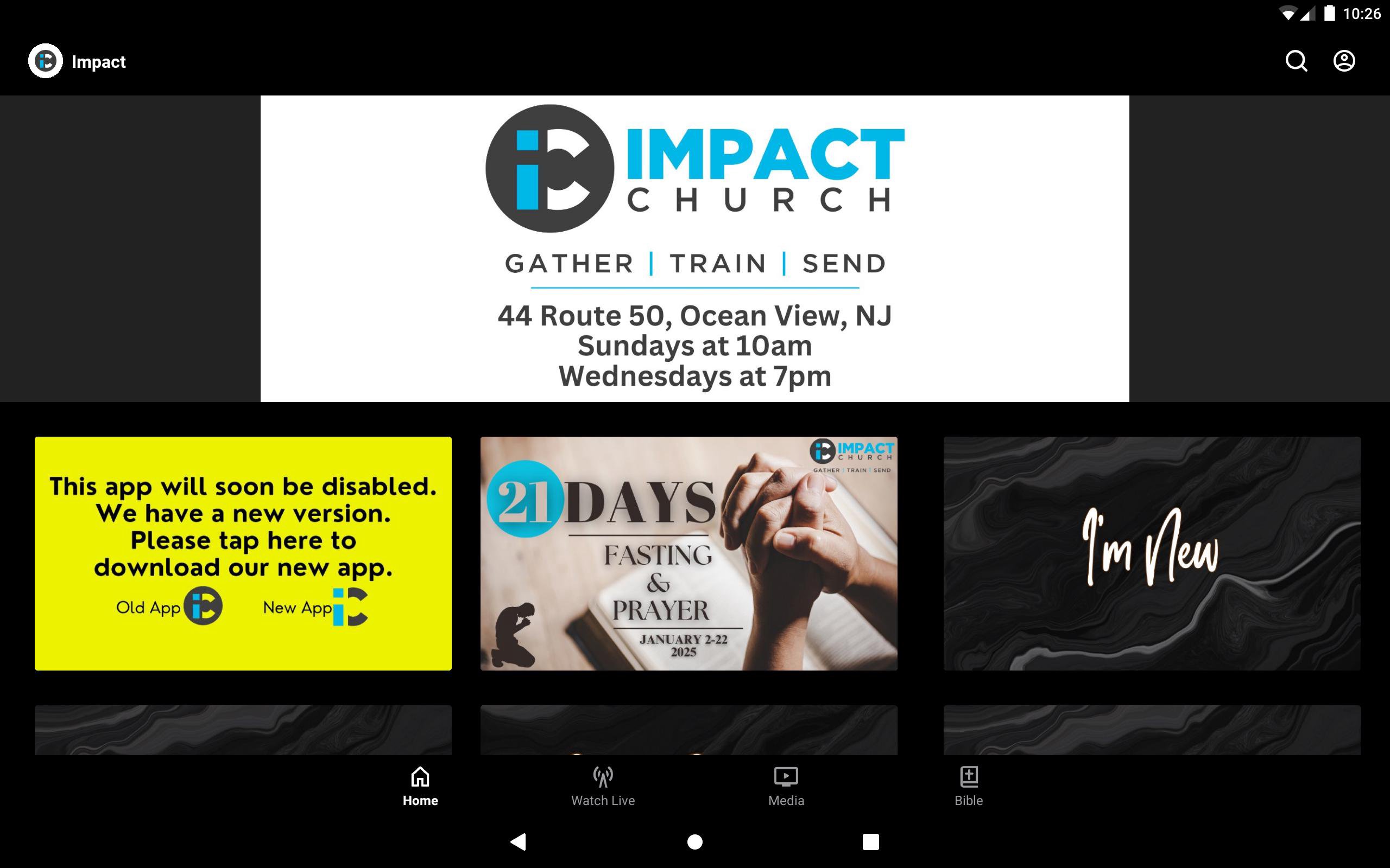 Impact Church exists to be a community of believers that seek to gather the lost, train the believer and send disciples 'into the world' to make a Kingdom Impact. Stay connected with us! Watch/listen to past sermons, stay up to date with our events and live streaming services. For more information on our ministries or if you just want to talk, give us a call at 609-624-3377, visit us on the web at www.impactchurch.co or email us at office@impactchurch.co