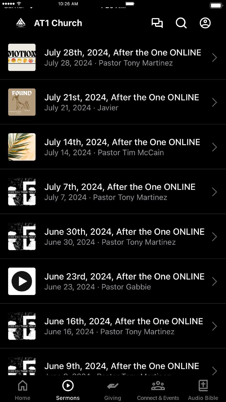 This app will help you stay connected with the day-to-day life of After the One Church. With this app you can: watch or listen to past messages; stay up to date with push notifications; share your favorite messages via Facebook, YouTube, or email; and download messages for offline listening.