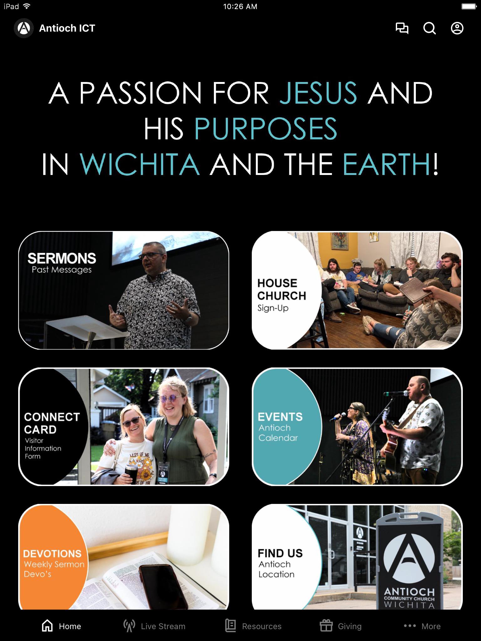 The Antioch Wichita app is packed with powerful content and resources to help you grow and stay connected. With this app you can: - Watch or listen to past messages - Sign up for events - Read articles and blog posts - Stay up to date with push notifications - Share your favorite messages via Twitter, Facebook, or email - Download messages for offline listening