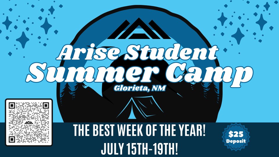 Welcome to the biggest week of the year in Student Ministry. Arise Students are headed to Glorieta, New Mexico for M3 CAMP! All students who have completed grades 6-12 are eligible for registration. Bring your friends because this truly is the don’t-miss-event of the year!
