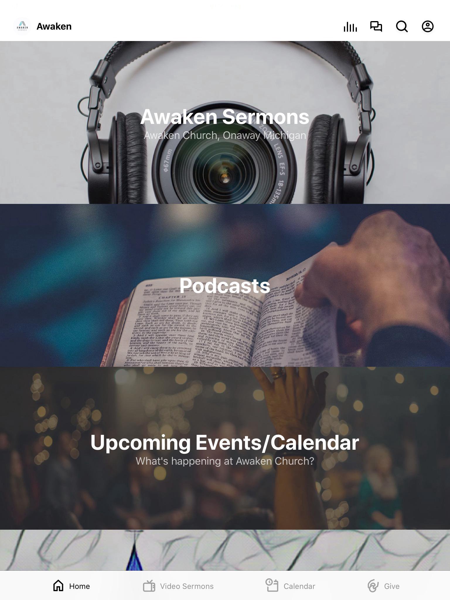 This app will help you stay connected with the day-to-day life of Awaken Church. With this app you can: watch or listen to past messages; stay up to date with push notifications; share your favorite messages via Facebook, or email; and download messages for offline listening.