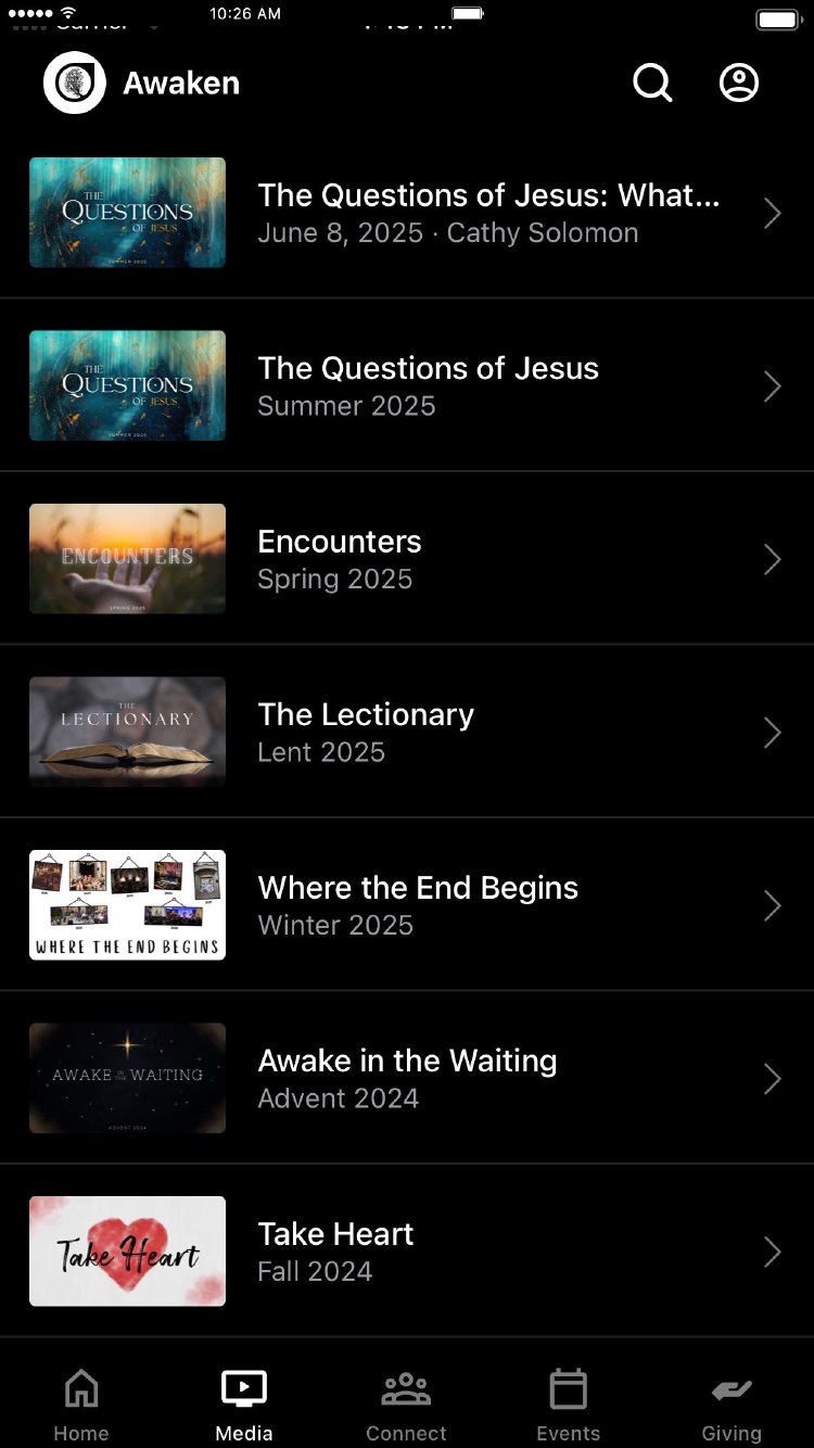 The Awaken app will help you stay connected with the day-to-day life of our church. With it you can: watch or listen to past messages; stay up to date with push notifications on areas of interest and groups; sign up for events and view the church calendar; share your favorite Awaken teachings via Twitter, Facebook, or email; and download messages for offline listening.