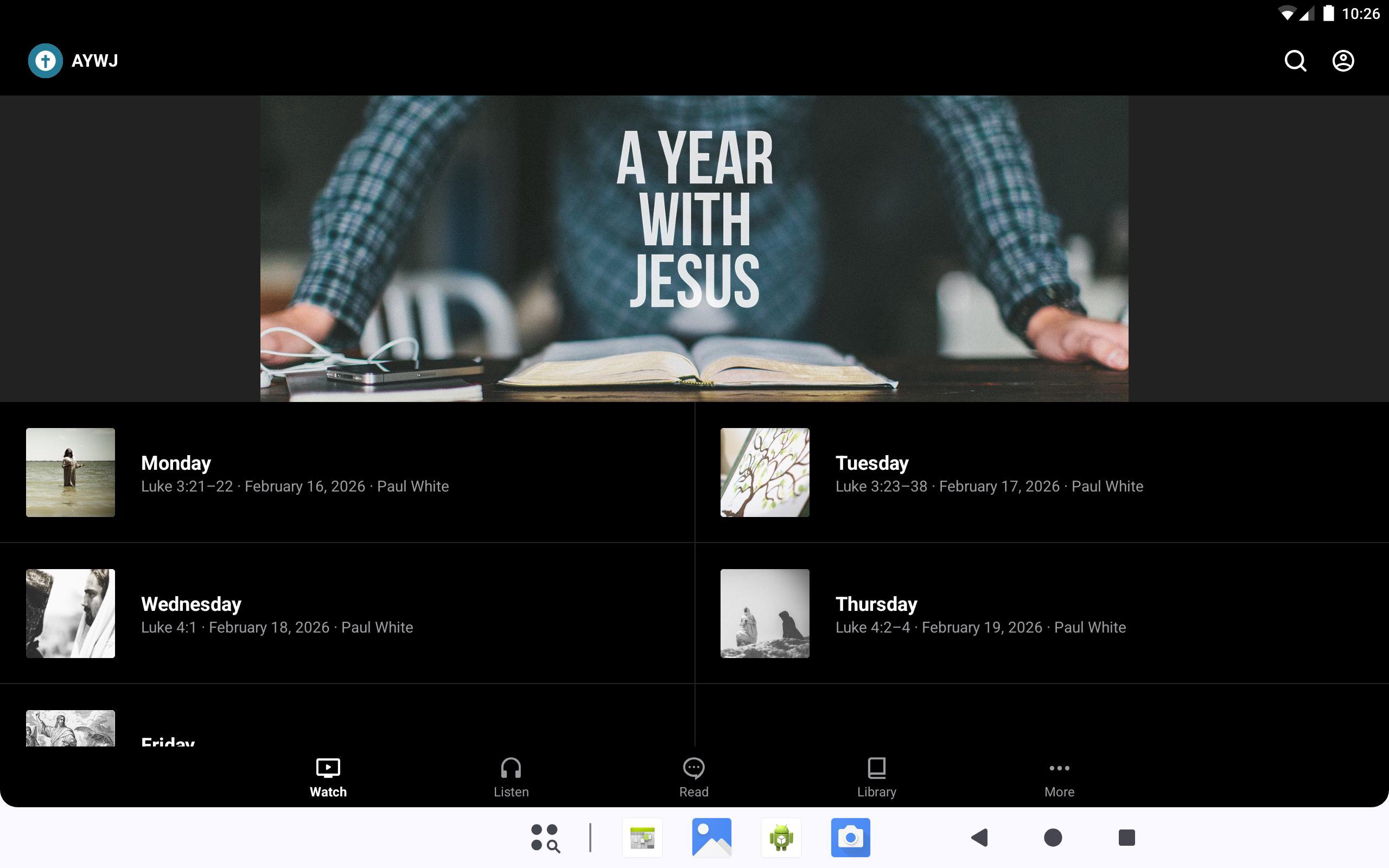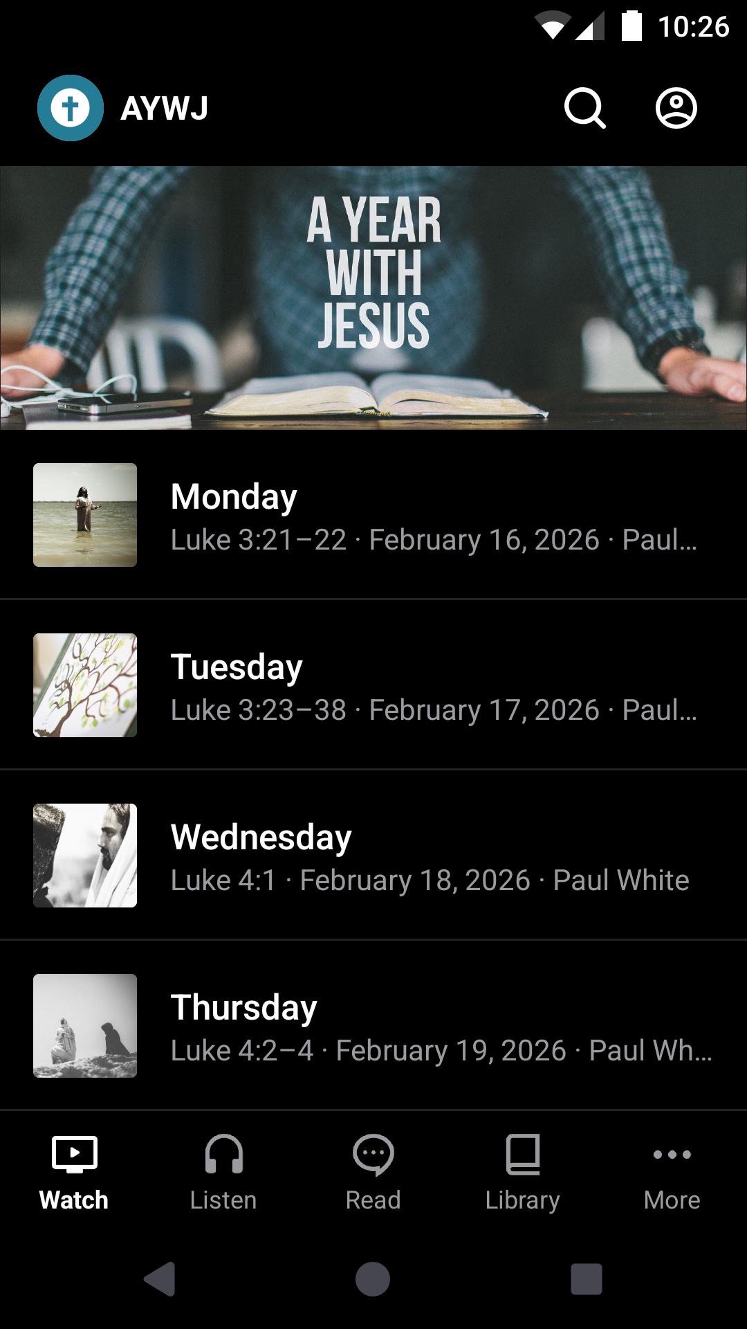 Welcome to the official A Year With Jesus app! Check out our daily devotions from the bible and share them with your friends via Facebook, Twitter, or email.