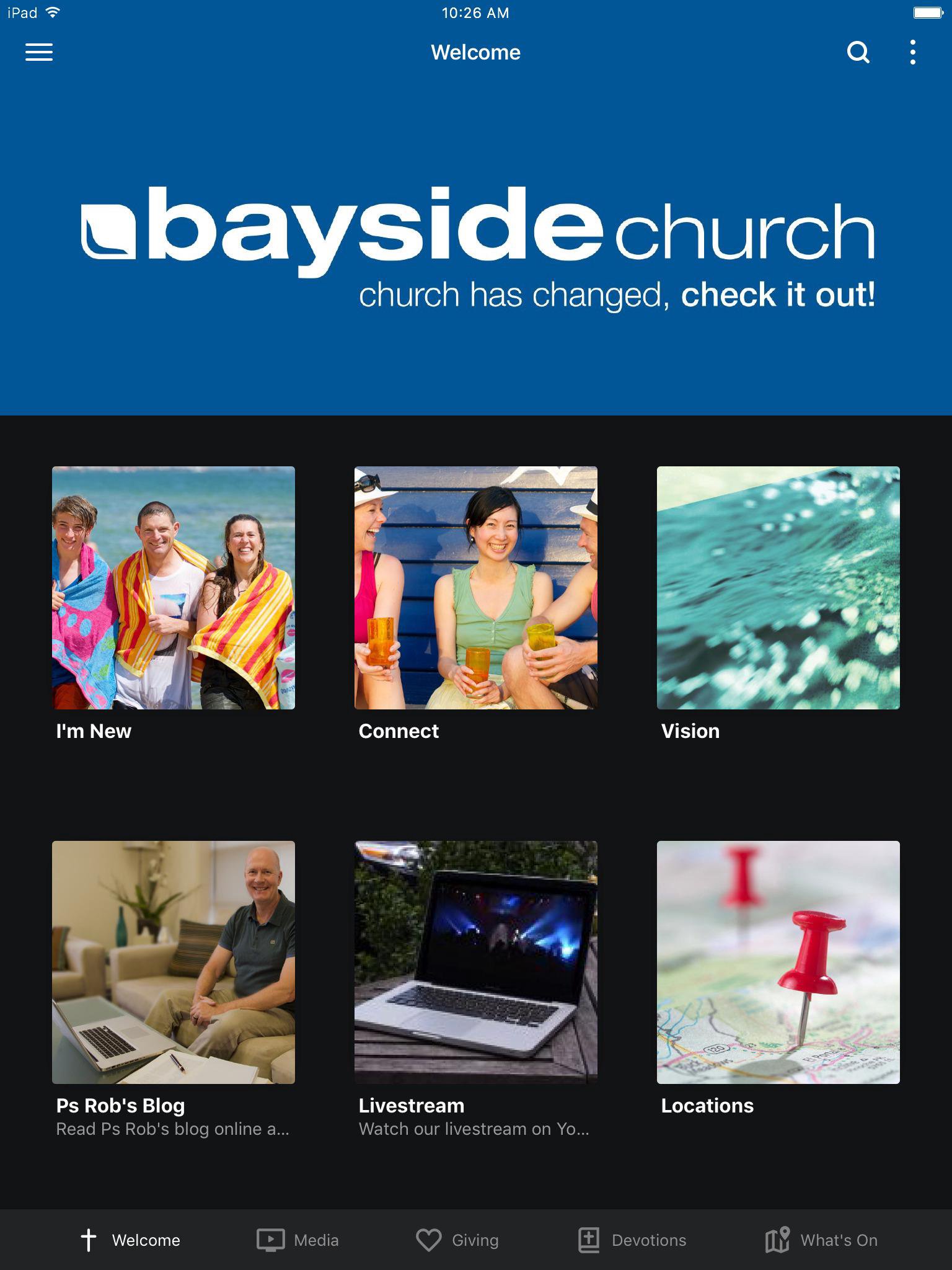 Welcome to the official Bayside Church App. Bayside is a thriving community in the city of Melbourne. Enjoy easy access to great content that will help develop your Christian faith wherever you are. The Bayside Church App features: * A catalogue of past sermons in both video and audio format, including message notes. * Be inspired and have your say on Ps Rob Buckingham's blog * Easy access to our gatherings via Livestream * Find out what's on with our event calendar * Find a connect group you could join * An ability to give online * Go deeper with a selection of devotions. For more information about Bayside Church, please visit: http://www.baysidechurch.com.au The Bayside Church App was created with the Subsplash App Platform.