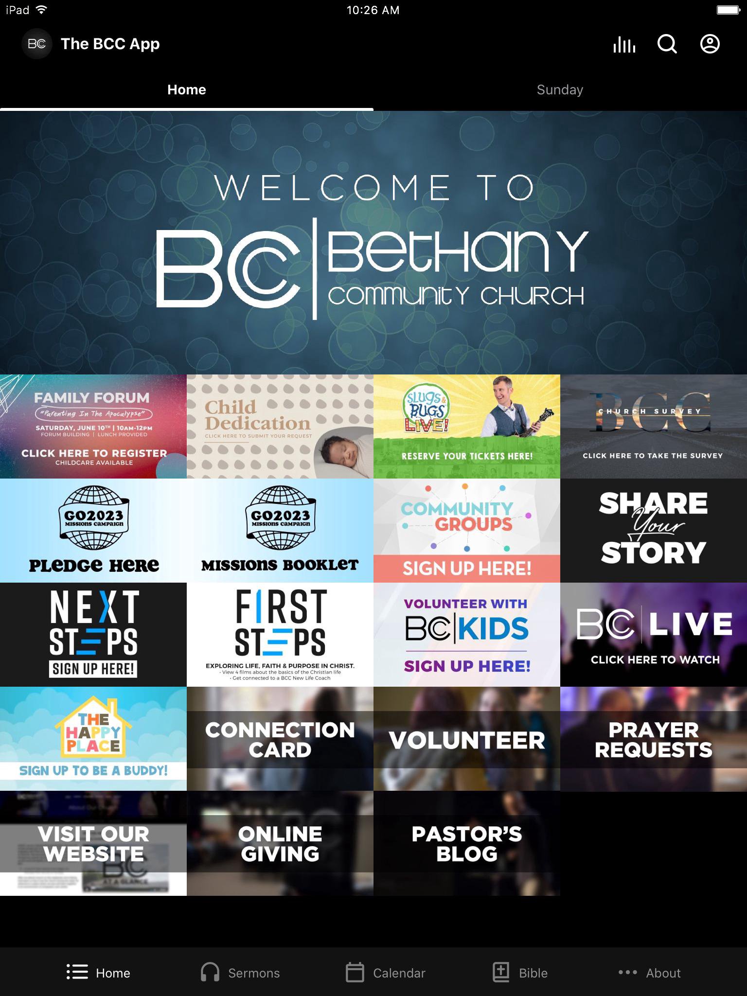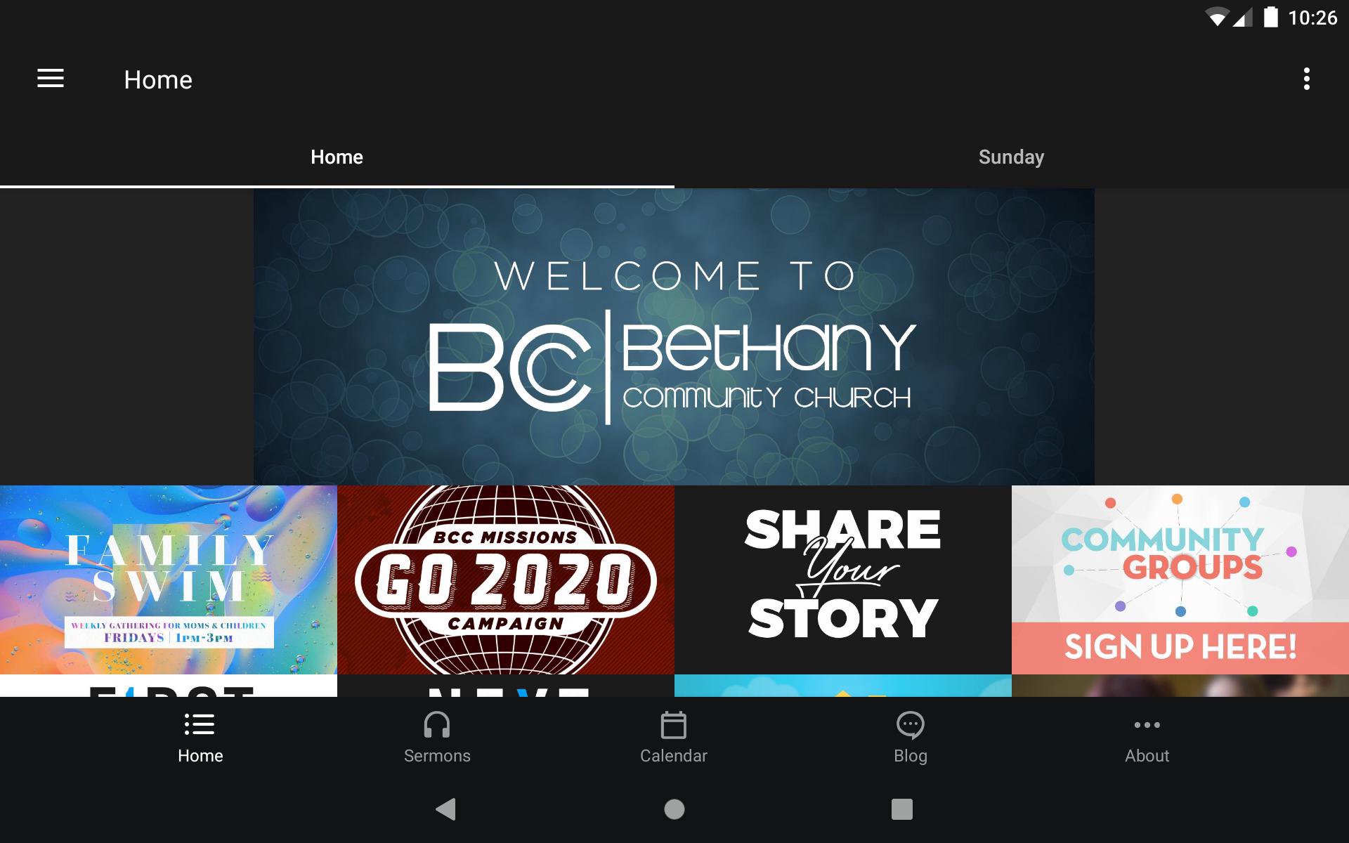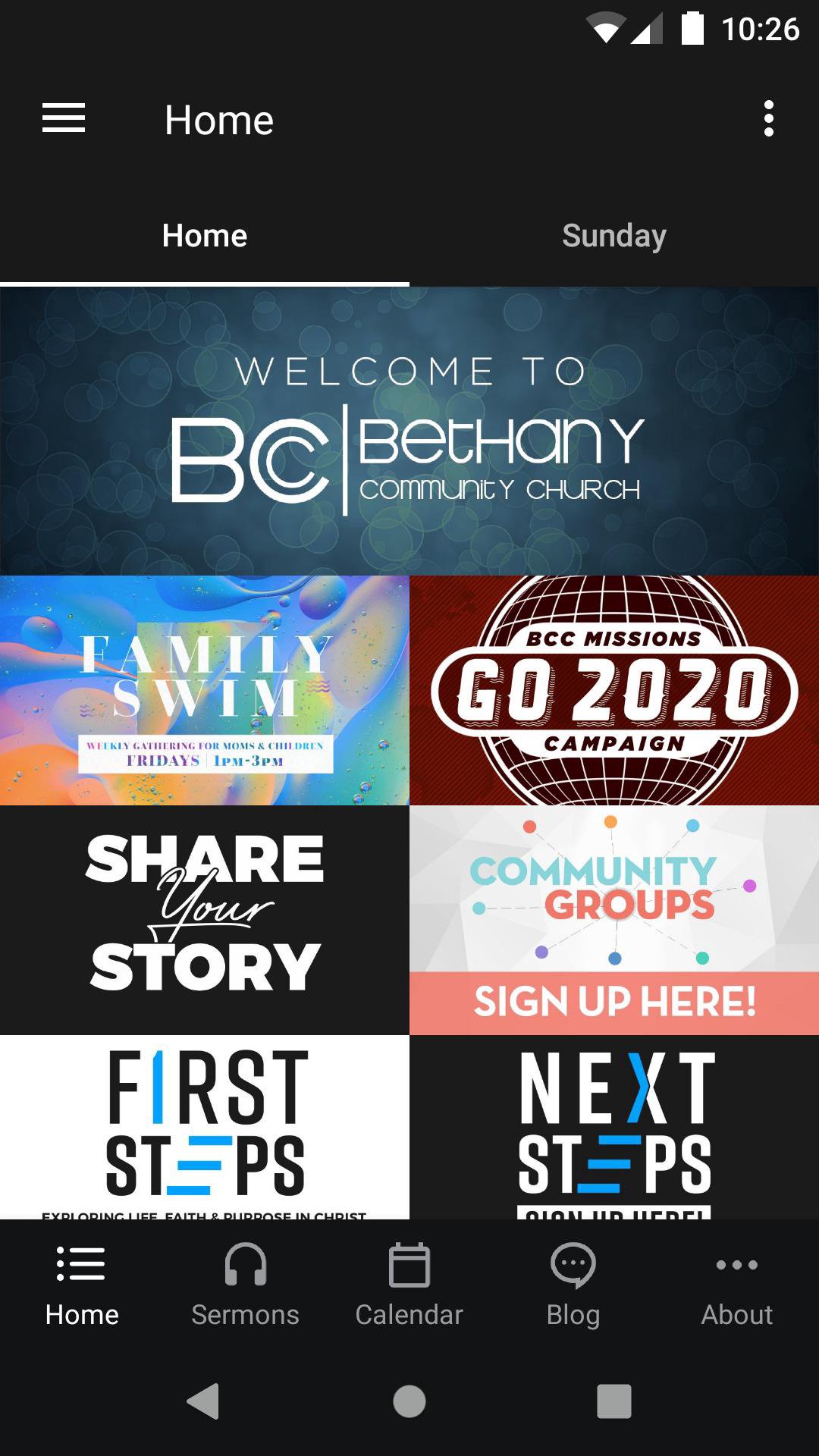 Welcome to the official Bethany Community Church mobile app! Get the latest from BCC all in one place. You can check out our current sermon series, read from our pastor's blog, stay informed about our upcoming events, and do so much more with the Bethany Mobile app! For more information about Bethany Community Church, located in Mendon, MA, please visit us at www.bccma.org. The Bethany Mobile app was developed with the Subsplash App Platform.
